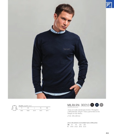 y 30% poliamida: 220 g/m². Puños y parte inferior en rib.