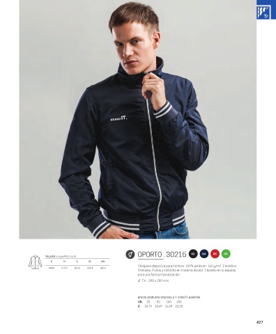 Chaqueta deportiva para hombre. 100% poliéster: 160 g/m². 2 bolsillos