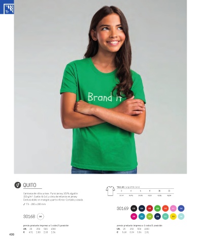 150 g/m². Cuello rib 1x1 y cinta de refuerzo en jersey. 31/42 34/45 37/48 40/51 43/55 46/59