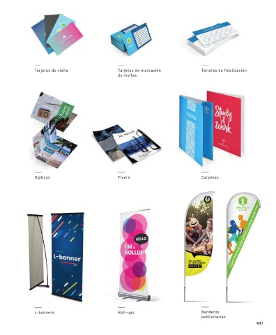Tarjetas de visita Tarjetas de marcación Tarjetas de fidelizacíón de visitas Dípticos Flyers Carpetas L-banners Roll-ups Banderas publicitarias 447