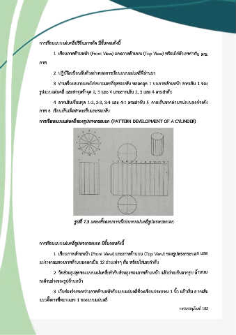 รูปที่ 7.3 แสดงขั้นตอนการเขียนแบบแผ่นคลี่รูปทรงกระบอก