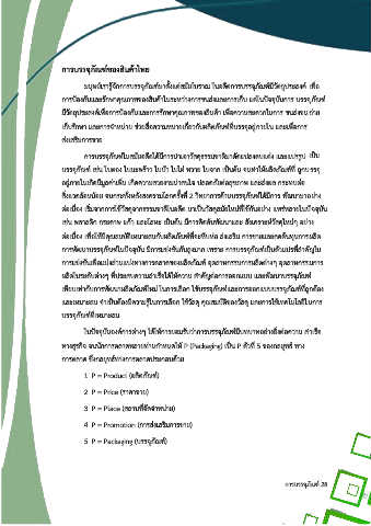 ทางธุรกิจ จนนักการตลาดหลายท่านกําหนดให้ P (Packaging) เป็น P ตัวที่ 5 ของกลยุทธ์ ทาง