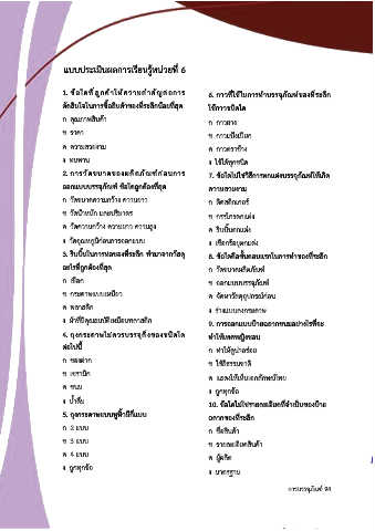 แบบประเมินผลการเรียนรู้หน่วยที่ 6