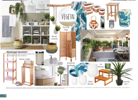 osier / Plante verte dans pot h130cm / Porte-savon céramique gris clair / Poubelle à pédale métal 3l taupe / Tapis de bain microfibre 45x75cm blanc