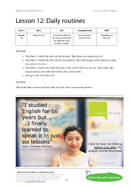 Lesson Daily routines To enable students to Job vocabulary; Speaking and