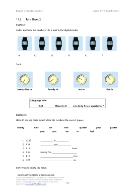 Listen and write the numbers 1 to 6 next to the digital clocks.