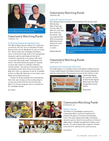 A GCU Matching Funds check was presented to Direc- with rain each day.