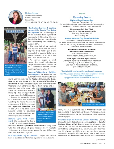 Holupki Open Golf Tourna- Coordinator Melissa Volunteer Days for National Clean a Park Day. Looking