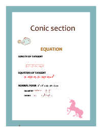Conic section EQUATION LENGTH OF TANGENT EQUATION OF TANGENT 2 (X 1 - H) (X - H) + (Y 1 - K) (Y - K) = R 2 2 NORMAL FORM X + Y + AX + BY + C = 0 DIAMETER RADIUS 5