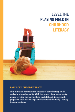 This initiative promotes the success of early literacy skills and educational equality. With the power of our community, we are leveling the playing field in childhood literacy with programs such as Footsteps2Brilliance and the Early Literacy Innovation Zone.
