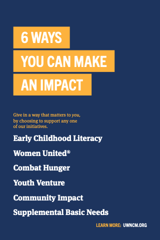 6 WAYS YOU CAN MAKE AN IMPACT Give in a way that matters to you, by choosing to support any one of our initiatives. Early Childhood Literacy Women United® Combat Hunger Youth Venture Community Impact Supplemental Basic Needs LEARN MORE: UWNCM.ORG