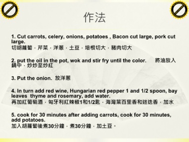 切胡蘿蔔,芹菜,洋蔥,土豆,培根切大,豬肉切大