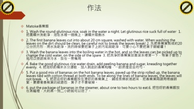 6. put the package of bananas in the steamer, about one to two hours to eat.6. 把包好的香蕉飯放
