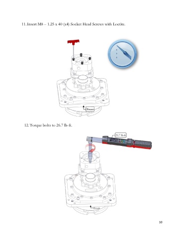 11. Insert M8 – 1.25 x 40 (x4) Socket Head Screws with Loctite. 12. Torque bolts to 26.7 lb-ft. 10