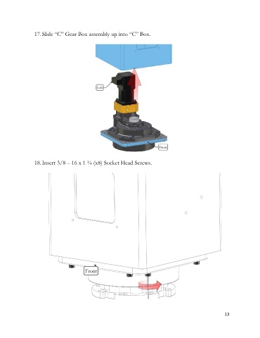 17. Slide “C” Gear Box assembly up into “C” Box. 18. Insert 3/8 – 16 x 1 ¼ (x8) Socket Head Screws. 13