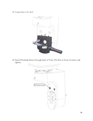 40. Torque bolts to 26.7 lb-ft. 41. Insert Proximity Sensor through back of Yoke. Put Nut on front of sensor and tighten. 28