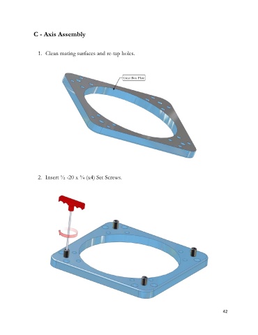 C - Axis Assembly 1. Clean mating surfaces and re-tap holes. 2. Insert ½ -20 x ¾ (x4) Set Screws. 42
