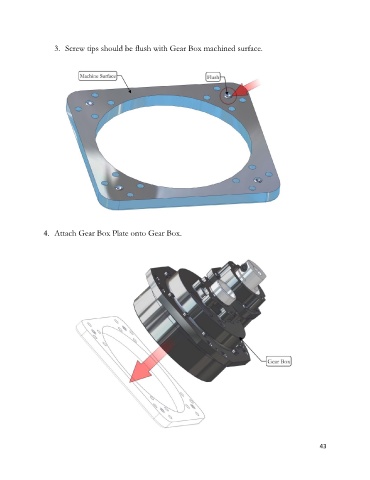 3. Screw tips should be flush with Gear Box machined surface. 4. Attach Gear Box Plate onto Gear Box. 43