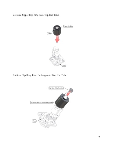 25. Slide Upper-Slip Ring onto Top Hat Tube. 26. Slide Slip Ring Tube Bushing onto Top Hat Tube. 54