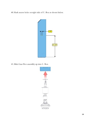 40. Mark access holes on right side of C- Box as shown below. 41. Slide Gear Box assembly up into C- Box. 64