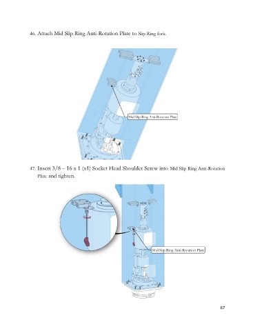 46. Attach Mid Slip Ring Anti-Rotation Plate to Slip Ring fork. 47. Insert 3/8 – 16 x 1 (x1) Socket Head Shoulder Screw into Mid Slip Ring Anti-Rotation Plate and tighten. 67