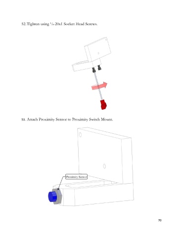 52. Tighten using ¼-20x1 Socket Head Screws. 53. Attach Proximity Sensor to Proximity Switch Mount. 70