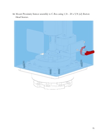 54. Mount Proximity Sensor assembly to C-Box using 1/4 – 20 x 5/8 (x2) Button Head Screws. 71