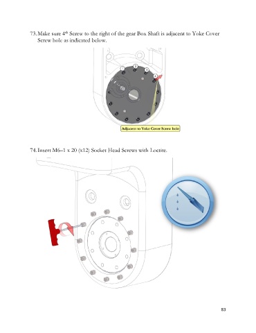 th 73. Make sure 4 Screw to the right of the gear Box Shaft is adjacent to Yoke Cover Screw hole as indicated below. 74. Insert M6–1 x 20 (x12) Socket Head Screws with Loctite. 83