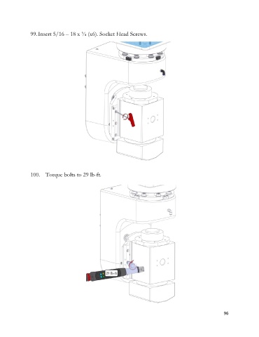 99. Insert 5/16 – 18 x ¾ (x6). Socket Head Screws. 100. Torque bolts to 29 lb-ft. 96