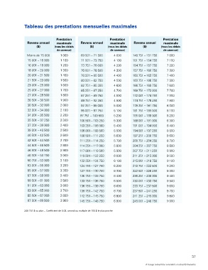 Tableau des prestations mensuelles maximales