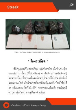 เป็นคุณสมบัติเฉพาะตัวของแร่แต่ละชนิด เมื่อน าแร่มาขีด