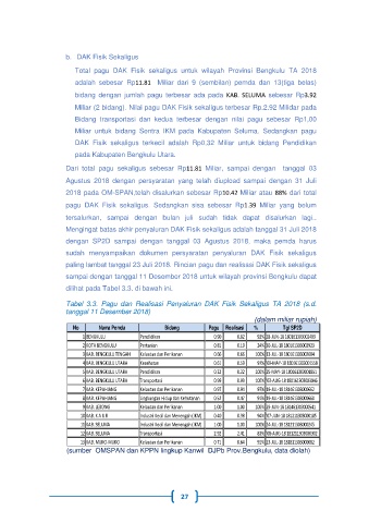 Tabel 3.3. Pagu dan Realisasi Penyaluran DAK Fisik Sekaligus TA 2018 (s.d.
