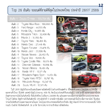 Top 20 อันดับ รถยนต์ที่ขายดีที่สุดในประเทศไทย ประจ าปี 2017/ 2560