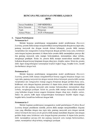 berkaitan dengan konsep himpunan dengan sikap jujur, disiplin, santun. Selain itu, peserta