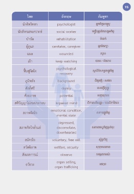 Page 17 - E-Book คำศัพท์เกี่ยวกับการต่อต้านการค้ามนุษย์ (ไทย-อังกฤษ-กัมพูชา)