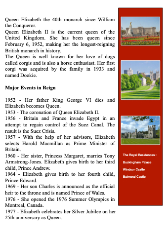 1969 - Her son Charles is announced as the official heir to the throne and is named Prince of Wales. 1976 - She opened the 1976 Summer Olympics in Montreal, Canada.