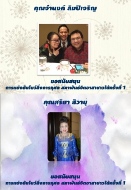 คุณจํานงค์ ลิมปิเจริญ ขอสนับสนุน การแข่งขันโบว์ลิ่งการกุศล สมาพันธ์จิตอาสาชาวใต้ครั้งที่ 1 คุณสริยา สิวายุ ขอสนับสนุน การแข่งขันโบว์ลิ่งการกุศล สมาพันธ์จิตอาสาชาวใต้ครั้งที่ 1