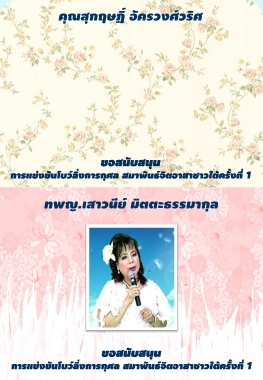 คุณสุกฤษฎิ์ อัครวงศ์วริศ ขอสนับสนุน การแข่งขันโบว์ลิ่งการกุศล สมาพันธ์จิตอาสาชาวใต้ครั้งที่ 1 ทพญ.เสาวนีย์ มิตตะธรรมากุล ขอสนับสนุน การแข่งขันโบว์ลิ่งการกุศล สมาพันธ์จิตอาสาชาวใต้ครั้งที่ 1