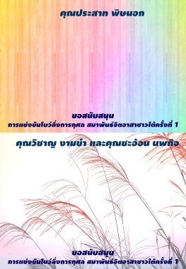 คุณประสาท พิษนอก ขอสนับสนุน การแข่งขันโบว์ลิ่งการกุศล สมาพันธ์จิตอาสาชาวใต้ครั้งที่ 1 คุณวิชาญ งามขํา และคุณชะอ้อน นพกิจ ขอสนับสนุน การแข่งขันโบว์ลิ่งการกุศล สมาพันธ์จิตอาสาชาวใต้ครั้งที่ 1