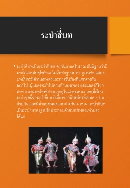 • ระบ าสี่บทเป็นระบ าที่ยกย่องกันมาแต่โบราณ สันนิฐานว่ามี