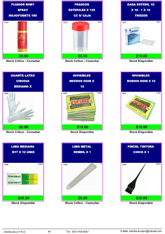Distribuidora P.R.O. 49 Tel.: 0351-458-8927 E-Mail: distribuidorapro@hotmail.com