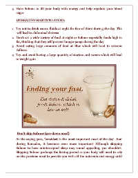 salt, especially during Suhoor (pre-dawn meal), as this increases thirst