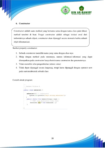 method tersebut di buat. Fungsi constructor adalah sebagai inisiasi awal dari