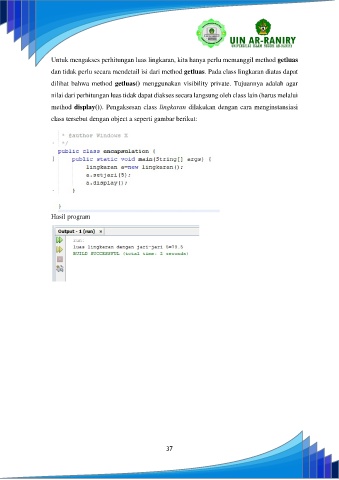 dilihat bahwa method getluas() menggunakan visibility private. Tujuannya adalah agar