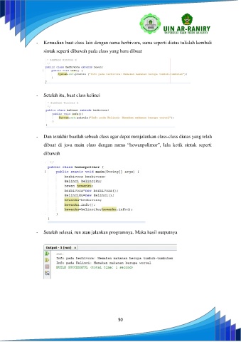 - Kemudian buat class lain dengan nama herbivora, sama seperti diatas tulislah kembali
