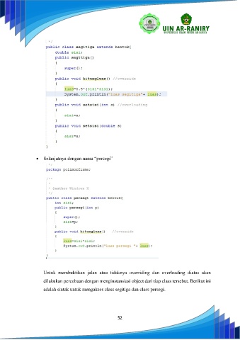 adalah sintak untuk mengakses class segitiga dan class persegi.
