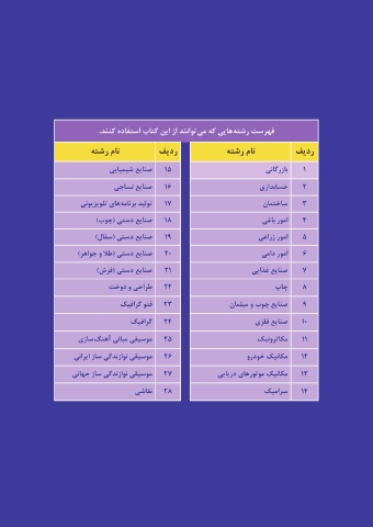 فهرست رشته هایی که می توانند از این کتاب استفاده کنند،