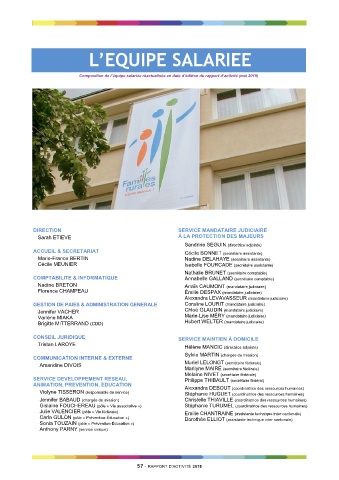 Composition de l’équipe salariée réactualisée en date d’édition du rapport d’activité (mai 2019)
