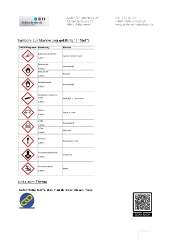 Maler Schlotterbeck AG 041 429 81 00 Ebikonerstrasse 75 info@schlotterbeck.ch 6043 Adligenswil www.malerschlotterbeck.ch Symbole zur Markierung gefährlicher Stoffe Links zum Thema Gefährliche Stoffe. Was man darüber wissen muss. 34 von 72