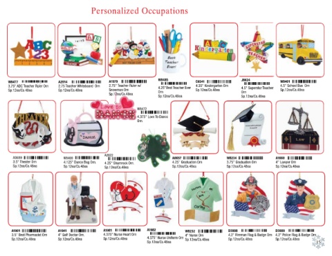 3.5" Best Pharmacist Orn 4" Golf Doctor Orn. 4.375" Nurse Heart Orn 4" Nurse Orn 4.2" Fireman Flag & Badge Orn 4.2" Police Flag & Badge Orn